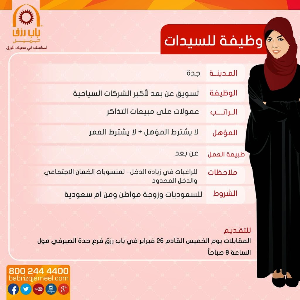 وظائف نسائية عن بعد في #جدة تسويق لشركة سياحية