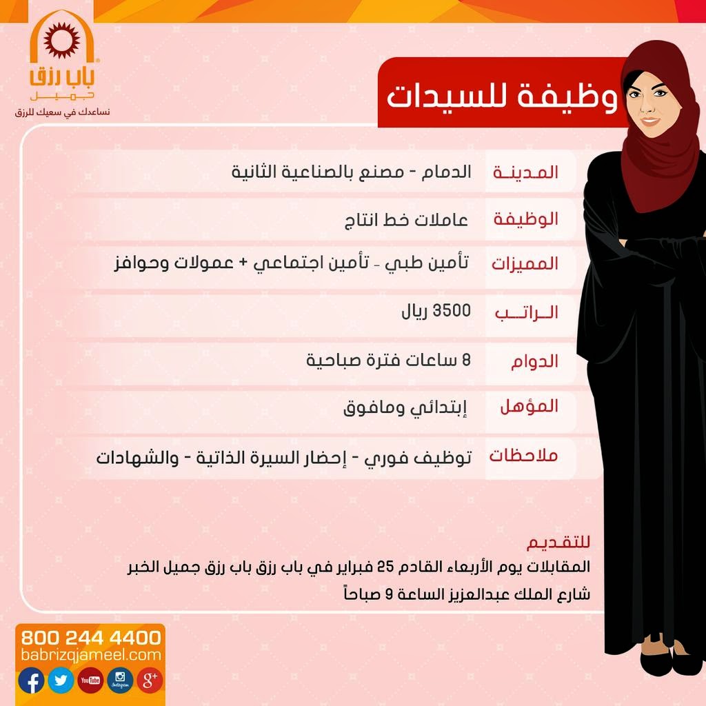 وظائف نسائيه في جدة عاملات خط انتاج رواتب 3500 لحملة الابتدائي واعلى