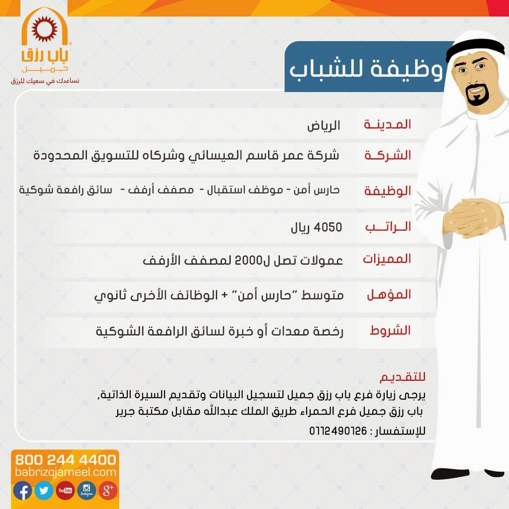 شركة العيسائي في الرياض حراس امن واستقبال ومصففين وسائقين رافعة رواتب 4050 ريال