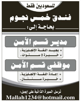 وظائف فندق خمس نجوم مدير قسم امن وموظفي أمن في #الرياض