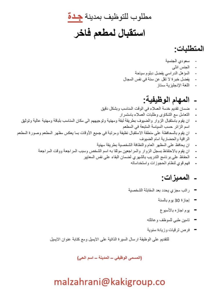 وظائف استقبال في مطعم فاخر