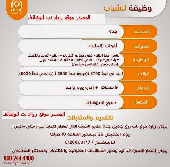 وظائف البيك في #جدة للابتدائي 3700 والدبلوم 5500 والجامعيين 8000 ريال