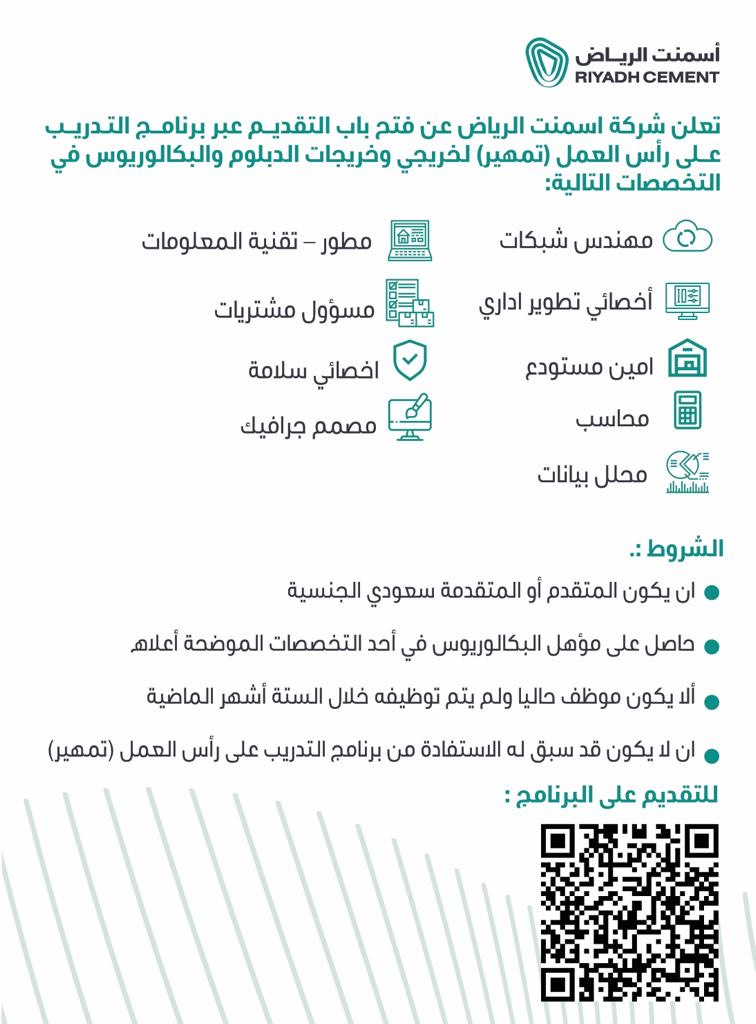 وظائف عبر تمهير في شركة أسمنت الرياض