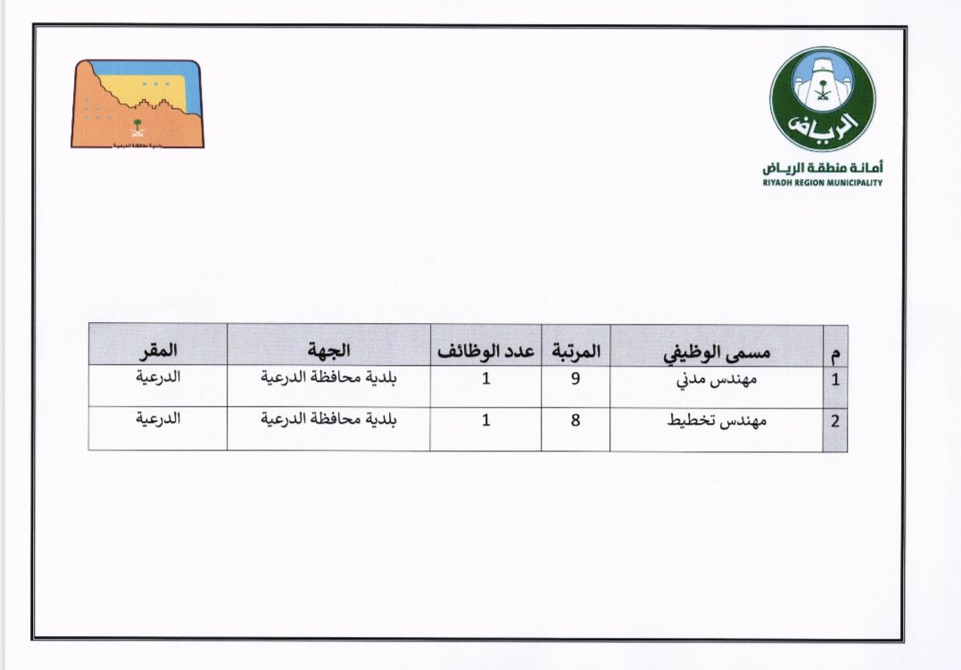 بلدية محافظة الدرعية تعلن عن وظائف هندسية شاغرة للجنسين) عبر (جدارات)، نقدم لكم في موقعنا كافة التفاصيل المعلن عنها للتقديم