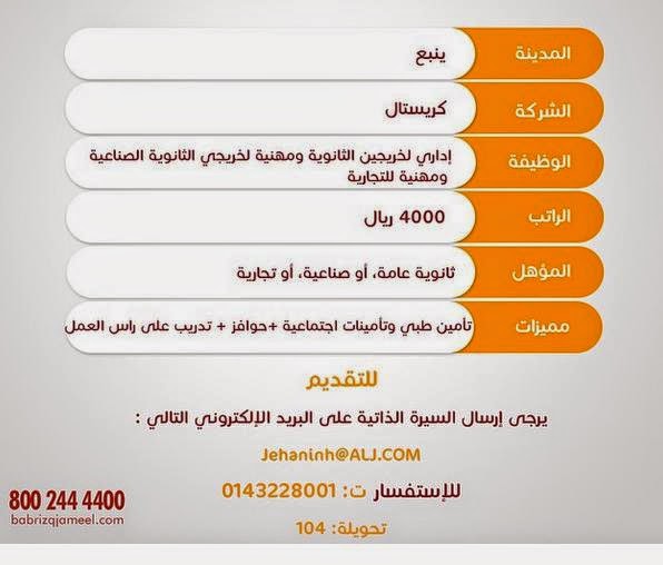 20/10/2014 | أحدث الوظائف اليوم، وظائف ينبع