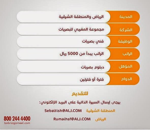 وظائف فنيين بصريات في الرياض وجدة