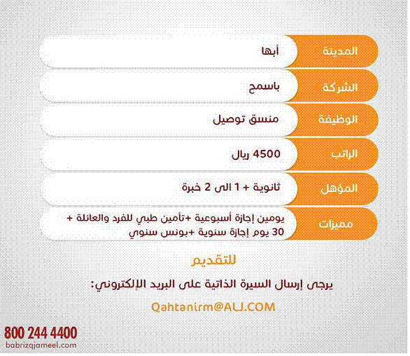وظائف في #ابها منسق توصيل رواتب 4500 ريال