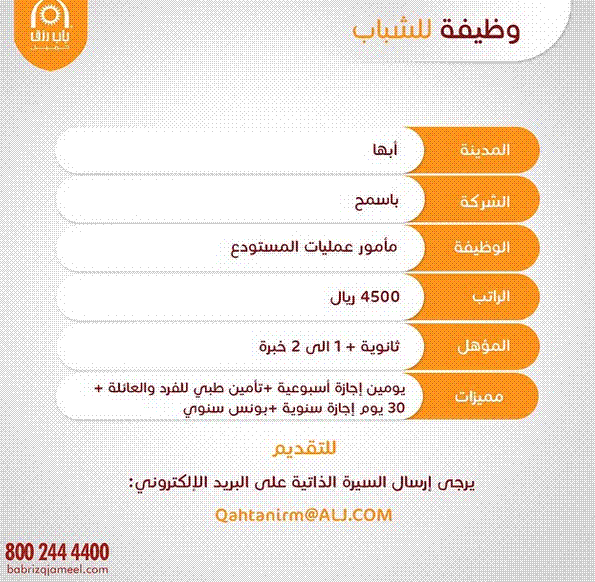 وظائف في #ابها مأمور عمليات مستوع رواتب 4500 ريال