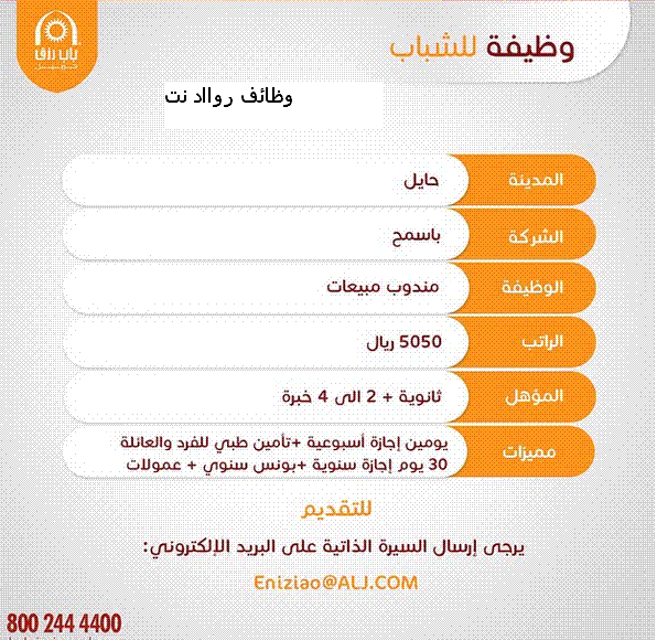 وظائف في حائل مندوبي مبيعات لخريجي الثانوية رواتب اكثر من 5000 ريال