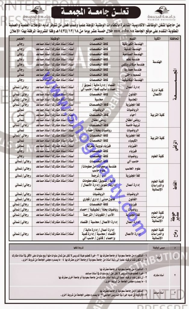 وظائف جامعة #المجمعة #نسائيه ورجاليه في كليات الهندسة وإدارة الاعمال والتربية والعلوم في كل التخصصات