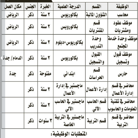 وظائف في جامعة اهلية في الرياض والدمام وجدة