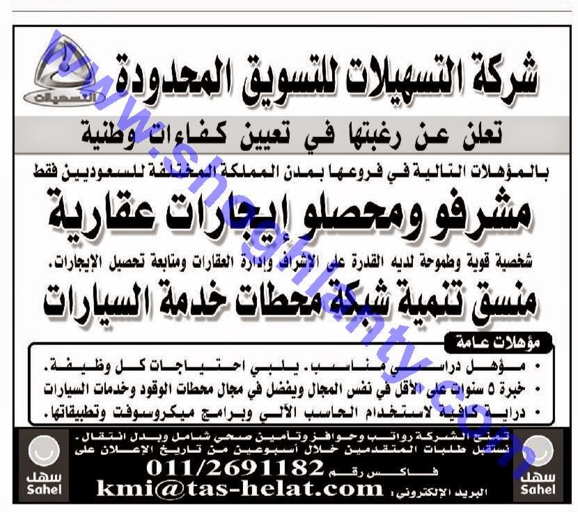 وظائف في شركة التسهيلات محطات سهل في كل المناطق مشرفين ومحصلين ايجارات وإخرى