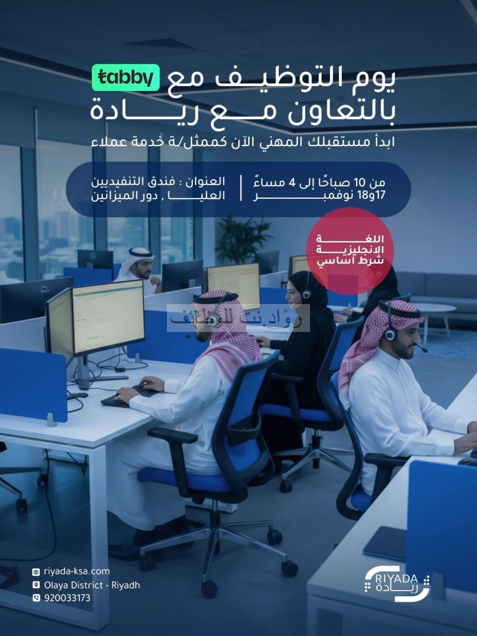 أعلنت شركة تابي، بالتعاون مع ريادة الأعمال عن فتح باب التوظيف للرجال والنساء للعمل بمسمى ممثل/ـة خدمة عملاء، وذلك ضمن فعالية توظيف تُقام في مدينة الرياض. للتفاصيل وطريقة التقديم في الأسفل