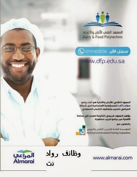 تدريب منتهي بالتوظيف في المعهد التقني للألبان والاغذية كما في الصورة