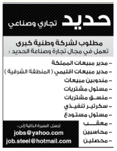 وظائف منوعه في شركة وطنية تعمل في مجال الحديد