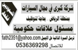 وظيفة مسئول علاقات حكومية في شركة سيارات في #الرياض