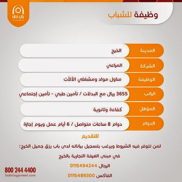 وظائف شركة المراعي في الخرج مناول مواد ومشغلي آلات –