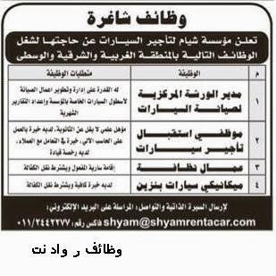 وظائف منوعه في مؤسسة شيام لتأجير السيارات