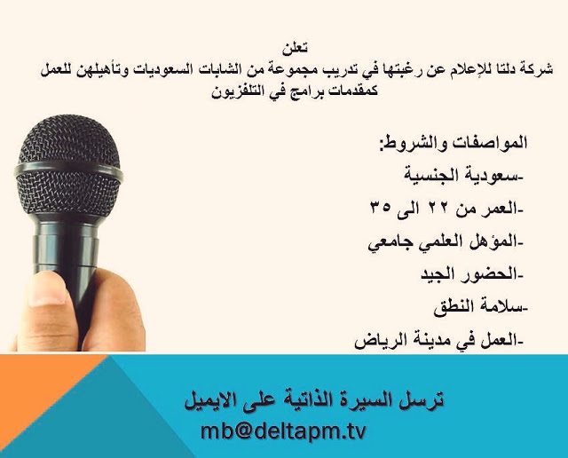 شركة دلتا للأعلام وظائف مقدمي برامج للجنسين في #الرياض للجامعيين