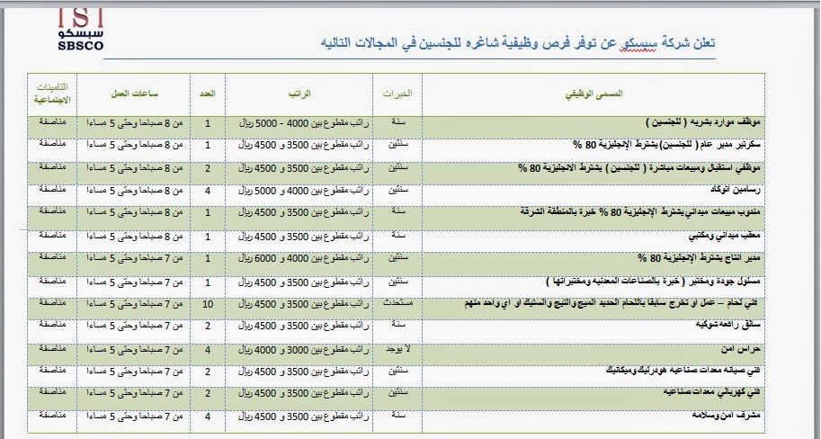 الوظائف هذه في شركة سبسكو الشروط والاحكام :