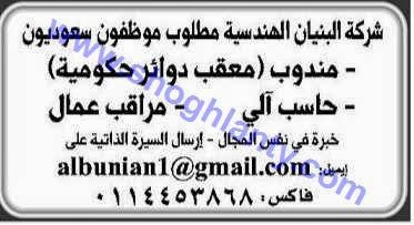 وظائف معقب وحاسب آلي ومراقب عمال في شركة البنيان الهندسية