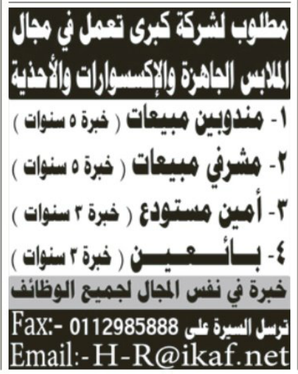 وظائف مندوبين مبيعات ومشرفين مبيعات وامناء مستودع وبائعين في الرياض