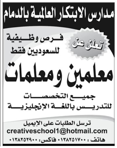 وظائف مدارس الابتكار العالمية بالدمام معلمين ومعلمات جميع التخصصات